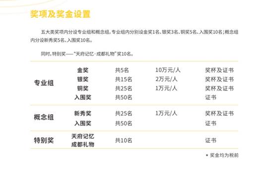 為加快世界文化名城建設,成都不斷強化文化引領、集群發展、跨界融合及品牌支撐,以國際化視野和前瞻性思維高標準建設文創產業生態圈。在此基礎上,本屆金熊貓天府創意設計獎將迎來全面升級。為全面完善頂層設計,提升獎項品牌影響力,今年的獎項將從強專家、引人才兩個維度深入著手,邀請國際國內一流創意設計大咖評獎、頒獎,同時面向全球知名設計機構、學院,世界500強等企業,以及國際友城定向邀請參獎,全面提升征集作品的國際化、專業化程度。