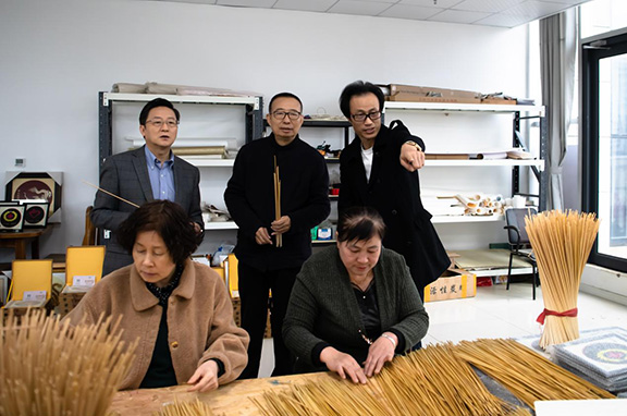 潘魯生在泊里鎮(zhèn)文化站參觀了麥草畫藝術博物館,實地調(diào)研了麥草畫加工藝術全流程。潘魯生認為,泊里麥草畫在發(fā)揮手藝傳承人的帶動作用,與民間藝人和當?shù)厝罕姳F發(fā)展,帶動農(nóng)村婦女居家就業(yè)、增收致富方面起到了重要作用。他希望,能夠進一步加強設計創(chuàng)新,提升產(chǎn)品的創(chuàng)作水平,做好手工藝知識產(chǎn)權保護工作,做好傳統(tǒng)工藝的傳承和創(chuàng)新。
