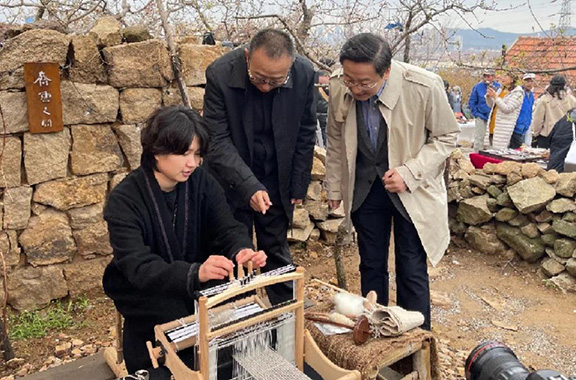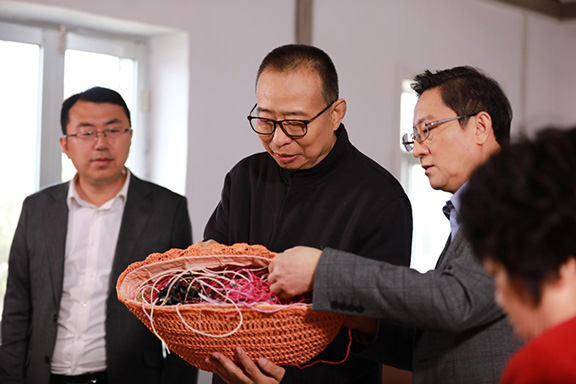 潘魯生在藏馬鎮(zhèn)實地調(diào)研了藏馬鎮(zhèn)編織工藝,詳細了解藏馬鎮(zhèn)鉤編工藝的推廣情況、編織產(chǎn)品的經(jīng)營銷售和帶動農(nóng)民增收情況。潘魯生認為,傳統(tǒng)手工藝要立足當?shù)厥炙囄幕?,在傳承中不斷實現(xiàn)創(chuàng)新,緊密貼合市場發(fā)展需要,把當下需求、時尚創(chuàng)意、設計創(chuàng)新等融入傳統(tǒng)手工藝品加工、銷售中,在傳承保護傳統(tǒng)手工藝的同時,讓手工藝成為農(nóng)民增收創(chuàng)富的重要手段。