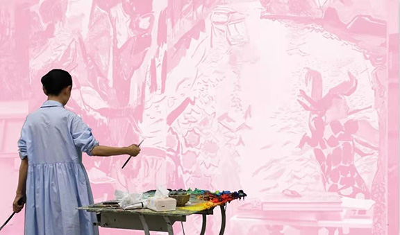 我有很多作品與粉色系有關,色彩氛圍與個人精神攪和在一起的渲染,