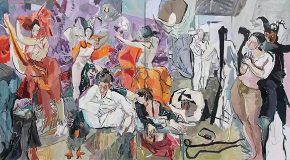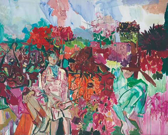 “萬簇生成”展覽分為四個單元,分別為“閃爍如歌”、“答案在風中飄揚”、“戀愛中的樣子”和“我不是美人魚”,四個單元中,閆平為我們呈現了小戲班們身體伸展的靈動、鮮花怒放的激情、濕潤的海風拂過的安謐,郊游的人們給2020之春賦予的生機,還有她心底的浪漫與生活細微之處碰撞激發的種種故事。一百余幅作品的體量系統性地展示了閆平近年來的創作風格與成就,閆平以心中的詩性配以寫意的筆觸,展示了她自由的本能和藝術的激情的喚醒過程。