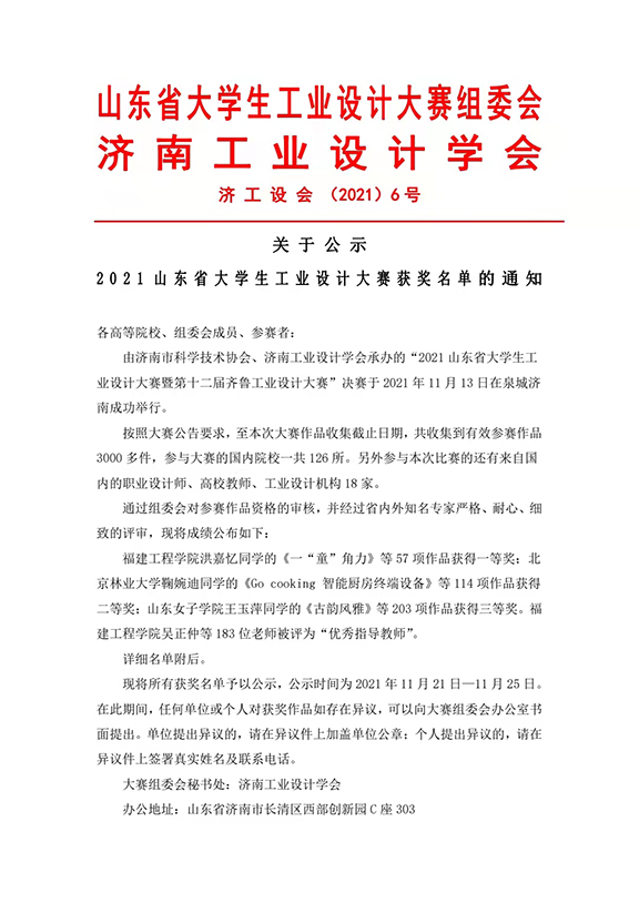首頁(yè) > 資訊 > 正文 資訊 設(shè)計(jì)訪談 設(shè)計(jì)賽訊 藝術(shù)名家 青年藝術(shù)家 視頻 素材教程 藝術(shù)展覽 設(shè)計(jì)志 2021山東省大學(xué)生工業(yè)設(shè)計(jì)大賽獲獎(jiǎng)名單的通知 發(fā)布: 2021-11-21 18:29 | 作者: | 來(lái)源: 設(shè)計(jì)藝術(shù) 編輯 夏明梏