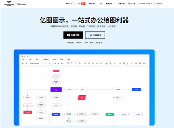 億圖圖示是萬興科技繪圖創意軟件領域的明星產品。不同于市場上其他繪圖軟件,億圖圖示深耕辦公繪圖領域十數載,產品兼容性更強,支持Windows、Mac、Linux,以及銀河麒麟、中標麒麟等國產操作系統及Web網頁下啟用,提供繪制流程圖、結構圖、工程圖、網絡圖、思維導圖等260+圖形圖表,可進行圖片、Word、Excel、PPT、PDF、Visio、HTML等格式導出,在全球擁有超過2500萬用戶,曾獲“鼎信杯”信息技術應用創新優秀應用軟件等獎項,在國內有著“國產Visio”之稱,客戶領域覆蓋政府、金融、電信、教育、互聯網等行業,包括阿里巴巴、華為、科大訊飛、南方電網、南方航空等企業。