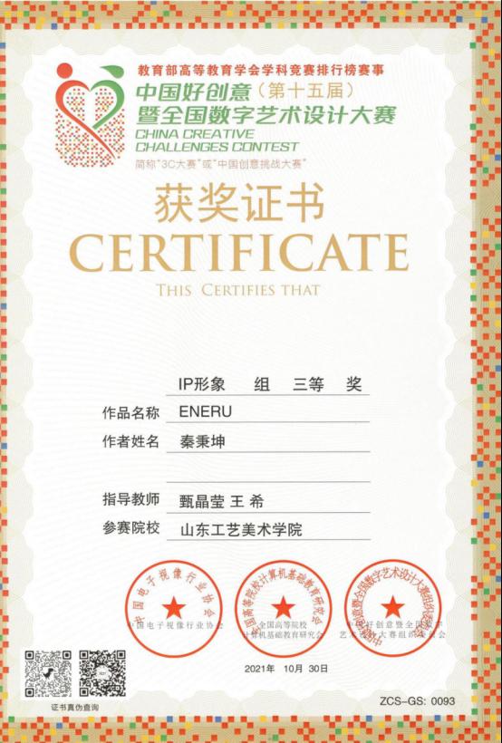 在“中國好創(chuàng)意暨全國數(shù)字藝術設計大賽”和“兩岸新銳設計競賽·華燦獎”中,產教融合青島基地學生斬獲全國賽道、山東賽區(qū)多項獎勵。其中,秦秉坤三維作品《ENERU》獲得“中國好創(chuàng)意”全國賽道三等獎;周子順三維作品《火塘神女》獲得“中國好創(chuàng)意”山東賽區(qū)二等獎;楊文軍三維作品《醒年》獲得“中國好創(chuàng)意”山東賽區(qū)三等獎。韓智超三維作品《機械革命》獲得“華燦獎”省賽三等獎;劉曉雅三維作品《如虎添財》獲得“華燦獎”省賽三等獎;張昀祺、王延忠、曹小駒、王一鳴無人機攝影作品《聽海》獲得“華燦獎”省賽三等獎。