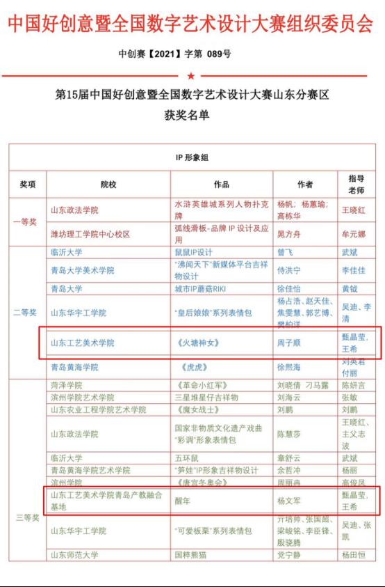 近日,山東工藝美術學院產教融合青島基地師生在中國好創(chuàng)意暨全國數(shù)字藝術設計大賽”(國賽&省賽)、“兩岸新銳設計競賽·華燦獎”、第十屆國際大學生微電影盛典等專業(yè)賽事、評審中屢獲佳績。