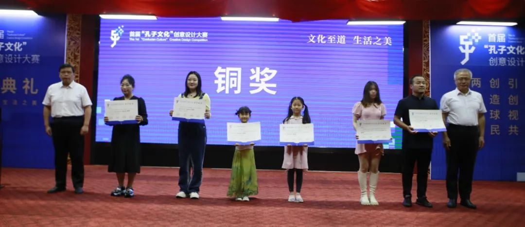首屆“孔子文化”創意設計大賽自去年6月正式啟動以來,共征集海內外各類創意設計作品11851件。經過初輪評審、二輪評審、綜合評議、現場公證等環節,評選出金獎 23 項,銀獎 44 項,銅獎 56 項,優秀獎618項,優秀組織獎 45項,優秀指導教師獎153 項。大賽組委會邀請到了大賽指導單位及主辦單位領導蒞臨頒獎典禮現場,為獲獎者頒發榮譽證書。