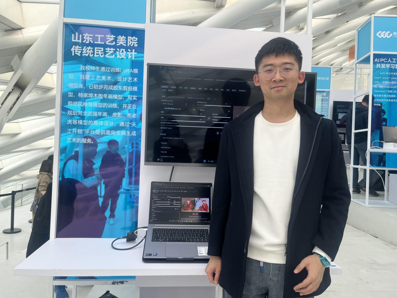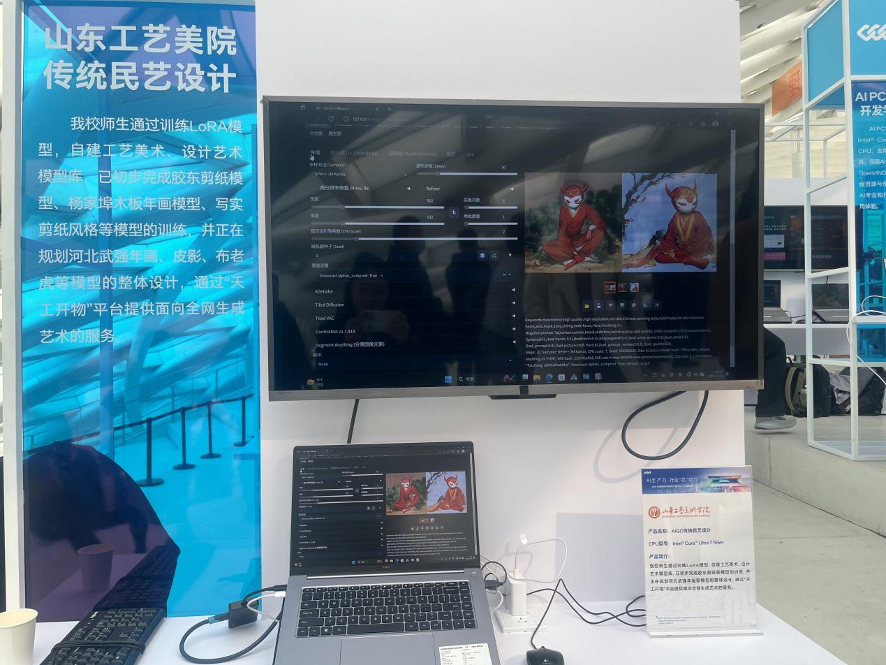 3月26日,英特爾在北京舉辦2024全新商用客戶端AI PC產(chǎn)品發(fā)布會(huì),發(fā)布了搭載英特爾酷睿Ultra處理器的商用AI PC產(chǎn)品及解決方案。山東工藝美術(shù)學(xué)院受邀出席,并在展會(huì)中使用搭載了山東工藝美術(shù)學(xué)院自建工藝美術(shù)模型的英特爾的AI PC進(jìn)行AIGC創(chuàng)作的展示,介紹了山東工藝美術(shù)學(xué)院“天工開物”大模型服務(wù)平臺(tái)相關(guān)情況。