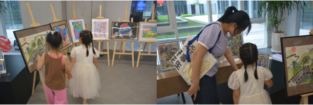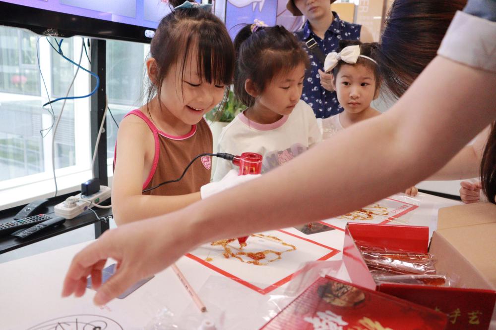 而兒童區的互動更是絡繹不絕,家長們帶著孩子觀展作品并進行了合照留念,互動中紛紛迫不及待地要求親身體驗糖畫創作與卡牌游戲。親手畫出他們喜愛的圖案的過程彷佛就是一種與傳統文化的身心交流,工坊活動的參與者們在孩子們一聲聲的歡聲笑語中仿佛重新感悟到了活動的意義與創新文化的延承。