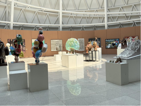 靜態展區劃分為四大板塊:學院作品展、數字藝術展、公共藝術展及跨專業展區。展區如同一幅精心繪制的藝術長卷,以多維視角全景式呈現當代設計生態的發展脈絡。漫步展區,觀眾可以欣賞到來自視覺傳達設計學院、建筑與景觀設計學院、工業設計學院、服裝學院、造型藝術學院、現代手工藝術學院、數字藝術與傳媒學院、人文藝術學院、應用設計學院與產教融合青島基地十大教學單位的1510件(套)畢業作品,這些作品凝聚著1877名2025屆畢業生的智慧結晶。