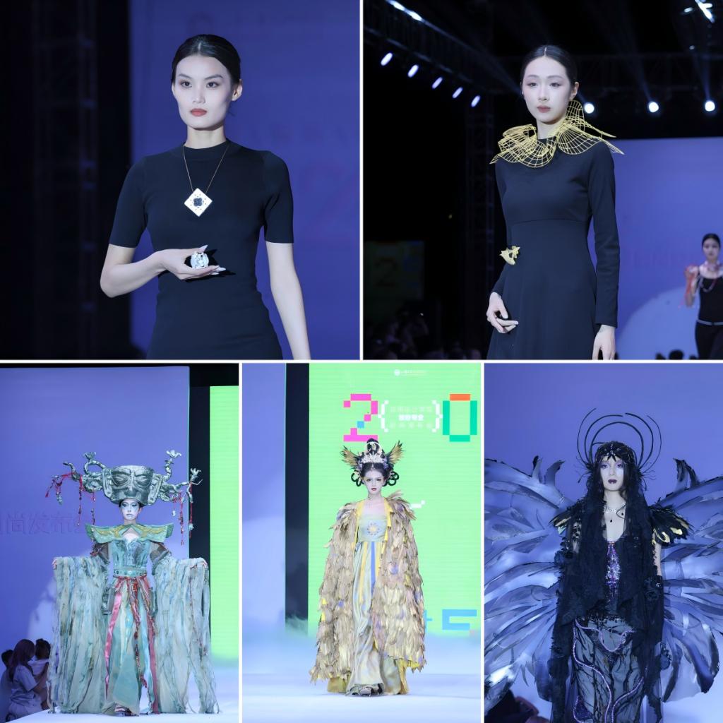 動態展演由服裝學院、現代手工藝術學院、應用設計學院聯袂呈現,以“時尚三部曲”的華彩樂章驚艷亮相:108套服裝設計作品翩若驚鴻,45件首飾設計臻品流光溢彩,15組妝扮設計創作顧盼生輝。參加展演的模特曾多次參加國內外各種專業賽事并屢獲獎項。