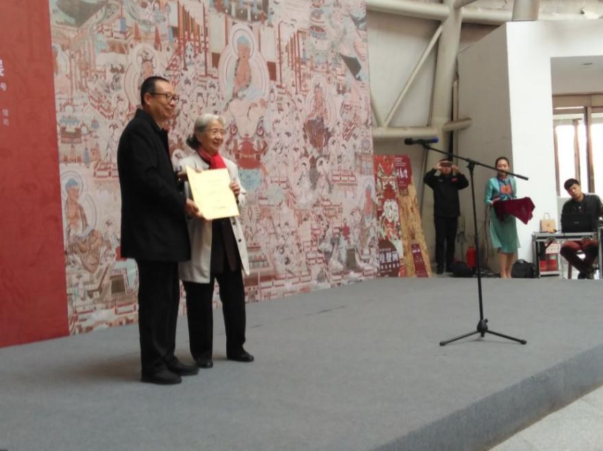 經學校研究,常沙娜先生被聘任為山東工藝美術學院首席顧問,并由潘魯生向常沙娜頒發了證書。常書鴻一生為敦煌藝術默默奉獻了半個世紀的年華,被后人贊為“敦煌守護神”。作為常書鴻女兒的常沙娜,經過歲月的流逝,一直以她自己的一生踐行著父親的藝術生命,透過工藝美術設計與教育的方式,將敦煌藝術之美帶給世界,因其對祖國與社會付出的至愛、塑造的至美,她的藝術思想與父親的一脈相承,那就是對美好始終如一的堅持,先生高貴的品質和人格,值得我們一直敬仰和學習。