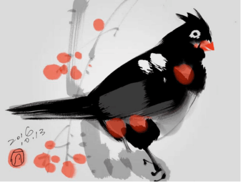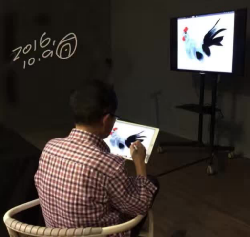 用iPad探索,在娟上畫水墨雞的效果