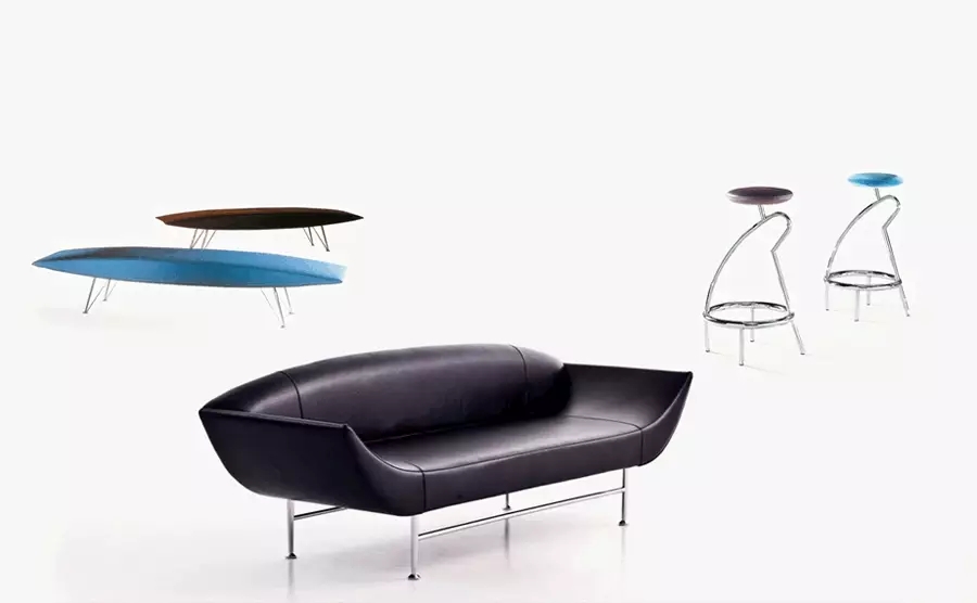 生于1959年的Massimo Iosa Ghini有著傳奇一般的職業(yè)生涯。他學(xué)習(xí)的專業(yè)是建筑,然而創(chuàng)業(yè)的起點卻是漫畫。也許是因為他最初的漫畫職業(yè)經(jīng)歷,他設(shè)計的家具就像是從他繪制的漫畫奇想中被直接抽取轉(zhuǎn)換而成立體器物,飛揚(yáng)的拋物線、不對稱的造形加上鮮艷飽滿的色彩,充滿著未來奇想。