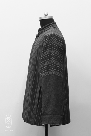 今生與傳統手織布相識,長期采風收布并漸漸愛上了這種淳樸的面料,感嘆于老一輩的人們精心編織的圖形,從而回歸于卿心原本的設計理念,蛻變為“卿心制坊”設計工作室,傳播手織布文化、創新傳統制衣設計。