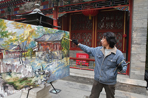 李宏偉教授恭王府油畫寫生工作照片