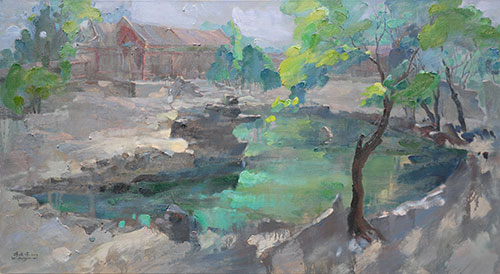 《朝陽映蝠池》 100*180cm 布面油畫 2014年