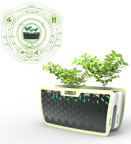 付志偉:印象比較深的是近年來做的臺灣“光寶杯”的比賽,他是世界華人圈子里面最高級別的競賽之一,而我當時的作品是叫“共生”,它是在一個微型環(huán)境內(nèi)有不同的生物、不同的生長體系的共生依存結(jié)合的科技生態(tài)系統(tǒng),可以給人帶來一種視覺享受并且給環(huán)境帶來新鮮空氣的補充、新的能源。它主要是一個立體的養(yǎng)生皿,將金魚的魚缸和無土栽培的栽培箱,太陽能的面板,以及包括一系列的電器裝置而整合一體的設(shè)計,當初提出這個概念主要是為了將ECO低碳環(huán)保的概念融入到真正的生活中去,讓學(xué)生感受到樸實的設(shè)計和自然生活之間的關(guān)系。