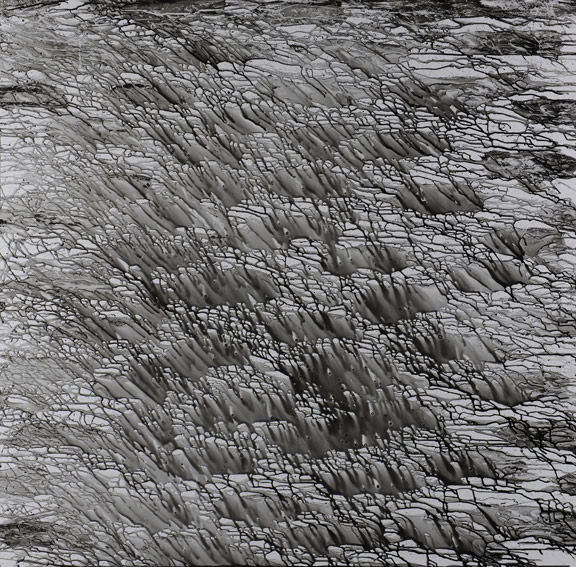 在今天的藝術生態中,探索綜合材料在藝術表現方面的魅力是很多畫家所著力的方向,大家嘗試不同媒介,并形成了全新的藝術表現形式。過去很多藝術家對綜合材料的探索方向是在用紙、用畫布、用現成的圖片、報紙進行剪貼組合,或者再加一定的繪畫效果處理方面。潘魯生這一次大量的運用瓷板和金屬鋁板來進行創作,雖然用的是陶瓷釉料和丙烯顏料,但是畫面上呈現出了中國水墨的筆觸、肌理、濃淡干濕以及自然流淌等藝術效果,形成了豐富多彩的繪畫語言,再一次展示了潘魯生大膽的創新精神和開拓精神。