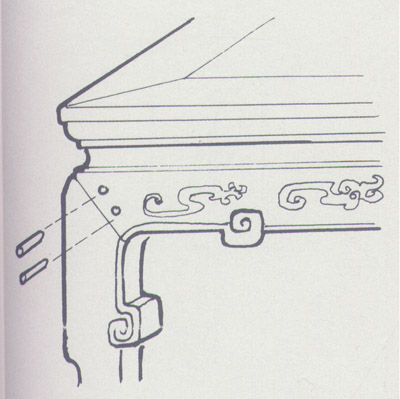 是一種比較少見的結構,做工十分講究,明代黃花梨萬歷柜及圈椅上應用,可作鑒定斷代的依據。