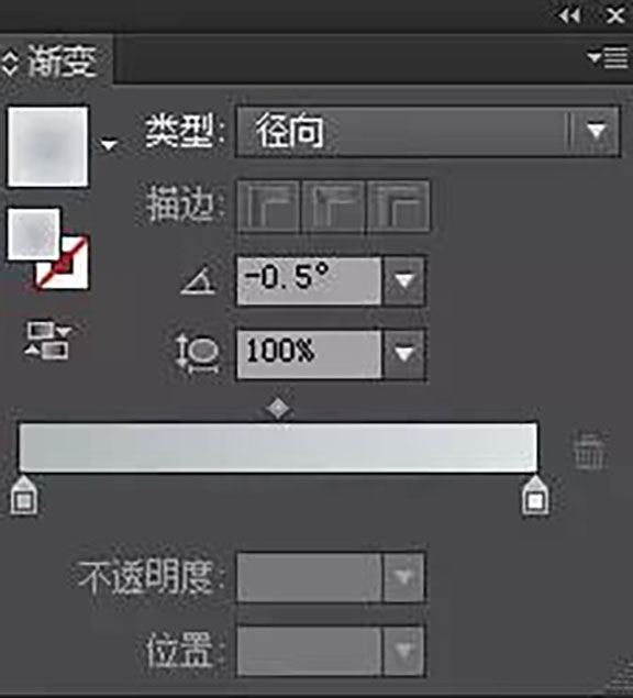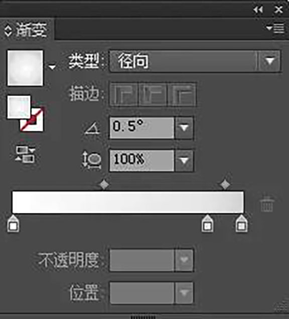 再選中圖中的黃色圖形(背光部分的邊),選中他,將他改為圖中的漸變填充具體值根據效果自己調整