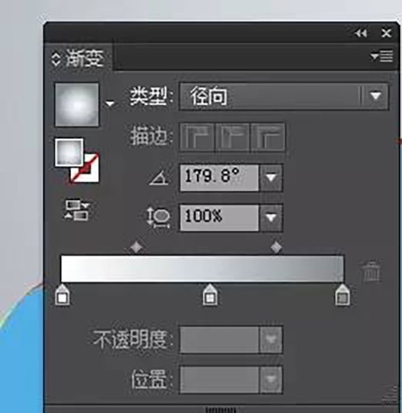 再將藍色圖形選中添加圖中的徑向漸變,值可以自己調整,效果最佳為最好