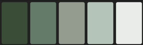 作品使用的顏色由灰白至綠色屬于同一個色系不同明度、灰度值因此相互協(xié)調(diào)。形式只有橫、縱、矩形。本身沒有裝飾的小號白色San Serif又支持了封面的大幅留白。因此所有的視覺信息很容易被歸納成一種典雅清新的日系風(fēng)格,沒有破功的地方。由于視覺信息量小,觀察者的大腦可以很容易把這些信息提取、存儲、因此感到舒服而不廉價(jià)。