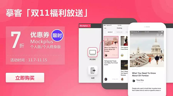 福利一: 摹客Mockplus個人版/個人終身版7折優(yōu)惠!下單時輸入優(yōu)惠碼【Mock1111】即可獲取。