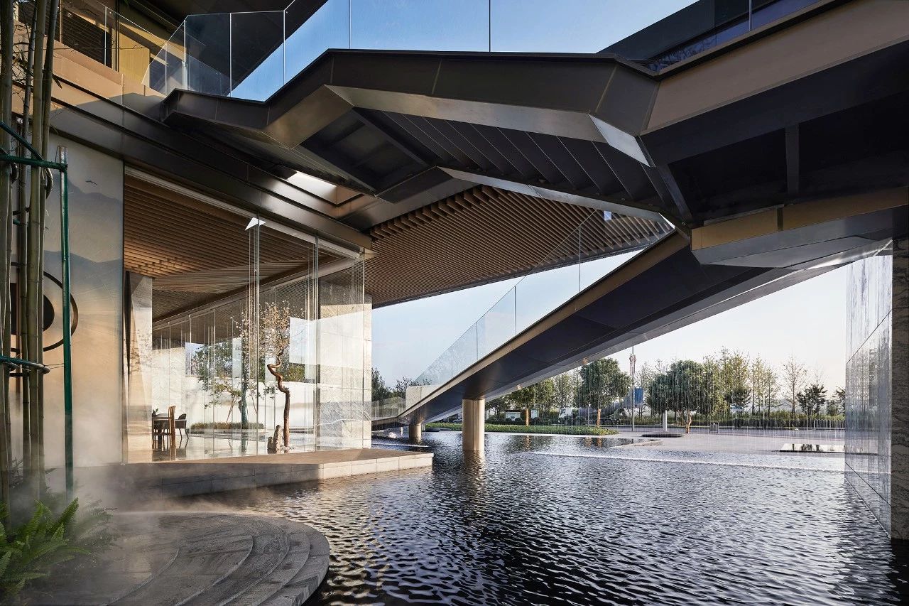 物形表象的渲染描摹,精神視像的化形延展,皆歸于設計師藝術筆法的融通與洞察。光影隨風入詩境,建筑的美學尺度悉數襯于可見的山石、水幕、折階、庭樹,與無限綿長的人文底蘊相和,構建出一方靈韻天成而隱逸自在的天地。