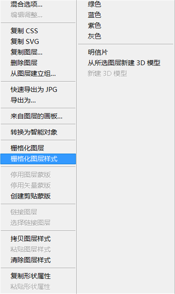 (2)將做好的金屬質感圖層柵格化圖層樣式(此操作是為了能讓后面的拉絲質感可以顯示出來)。