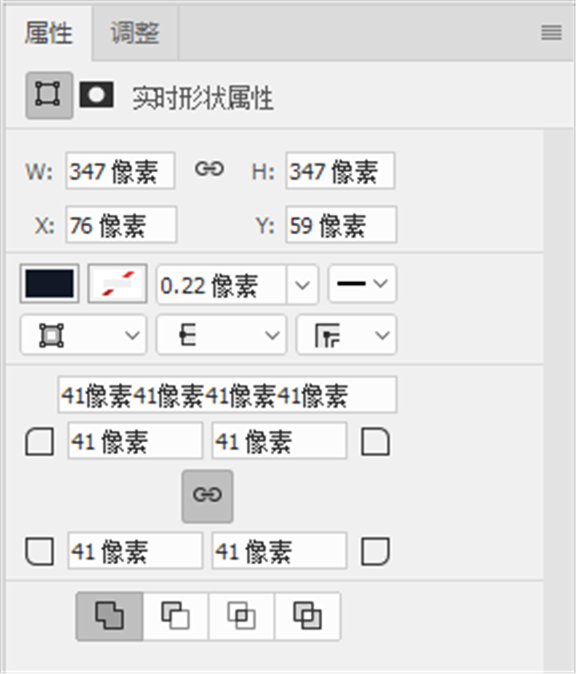 2.新建畫布之后我們開始創作圖標,首先建立圓角矩形,按住shift鍵畫一個正圓角,右側屬性欄調整圓角大小。