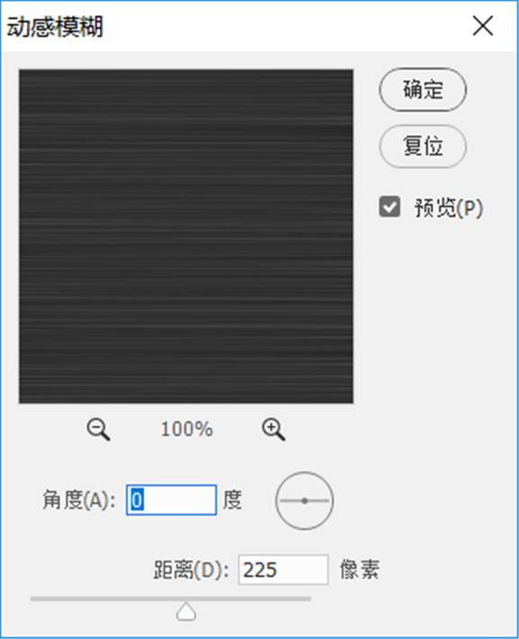 (4)繼續執行“濾鏡”-“模糊”-“動感模糊”,模糊方向可以自定,模糊距離越大還是效果更明顯。
