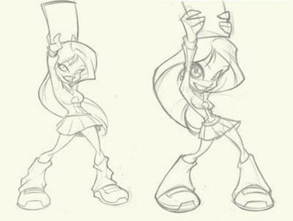 在這個工作室中,素描人員將創意畫出來,然后客戶與藝術指導和設計師一同進行修正。在原圖進行下一步的上墨和涂色之前,要先取得客戶的認可。這樣能夠節約時間,并沉淀創意。下面這個例子就是與客戶進行溝通的草圖。通常這張草圖被送到客戶手中進行確認,或取得修改建議。一旦草圖方案敲定,設計就移交至下一個流程--線條著墨,人物上色。