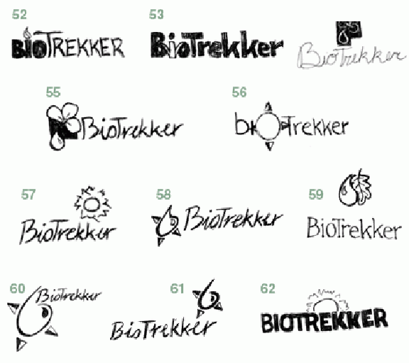 花上一兩個小時隨意畫一畫,得到多種備選方案。這也是設計中非常重要的一步。在用電腦制作之前,在紙上畫一畫能夠節省很多時間。雖然在電腦上也可以畫草圖,但在紙上描繪頭腦中的想法要快的多。在bioTrekker Logo 草圖設計 中,設計師Karley Barrett展示了在logo設計過程中草圖的大量使用。她構思了60多種備選方案,然后從中進行進一步的篩選。Barrett構思圖像、排版和布局的過程是非常有趣的。她將多種想法畫出來,然后尋找最佳的方案。因為logo的草圖是非常小的,因些工作進度很快,可以在較短的時間畫出各種想法。