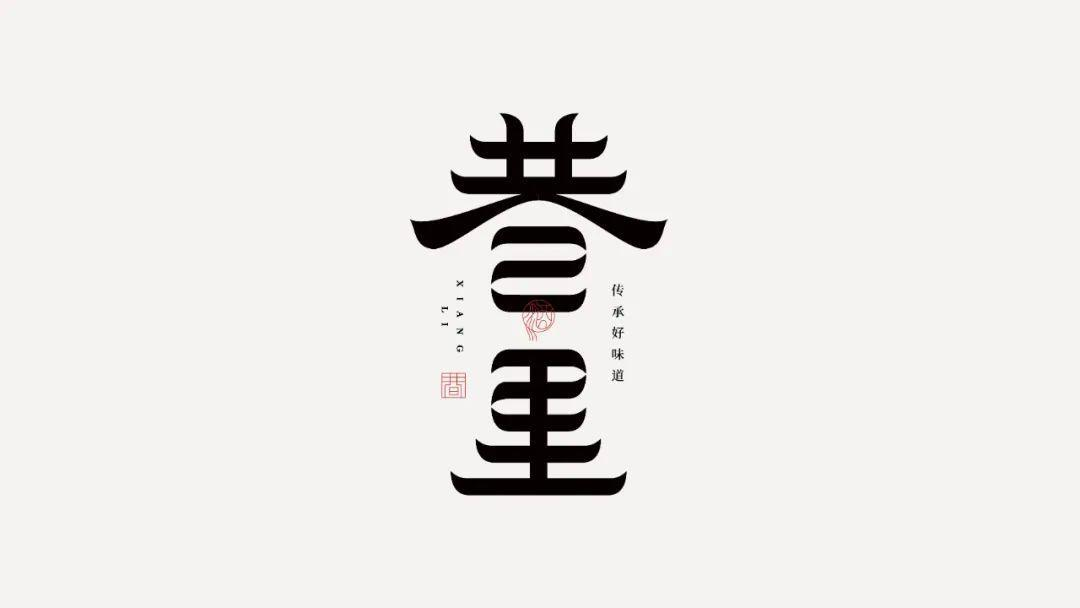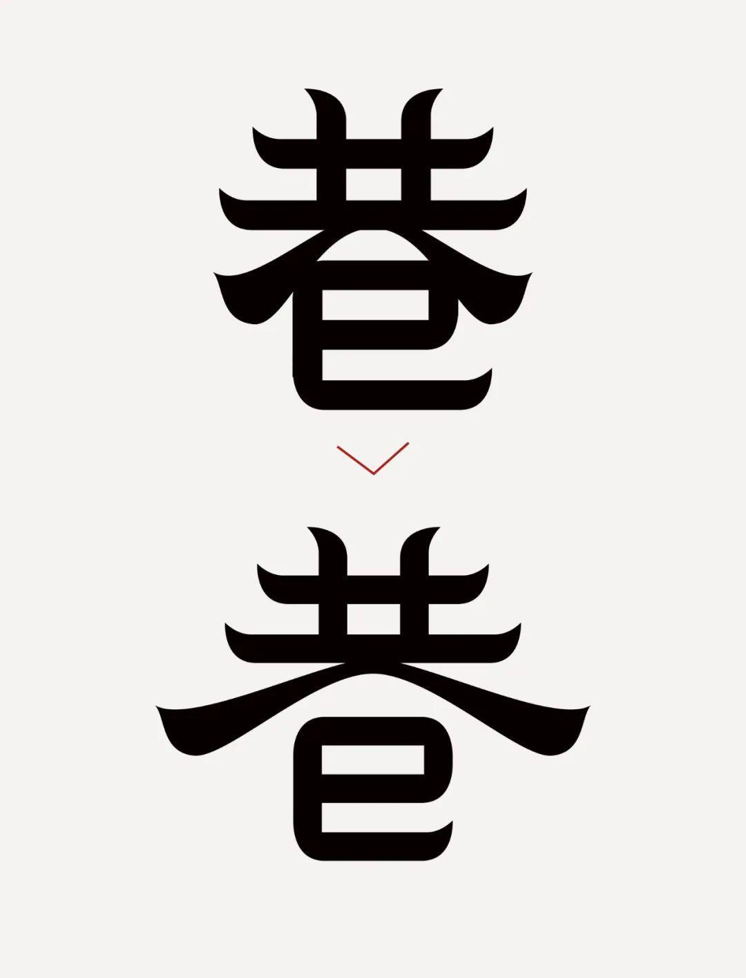 “巷里”,是一家中式餐館,根據名稱,能聯想到飛檐翹角,先來做“巷”字,參考黑體字,給筆畫做變形,起筆和收筆處都融入尖角。