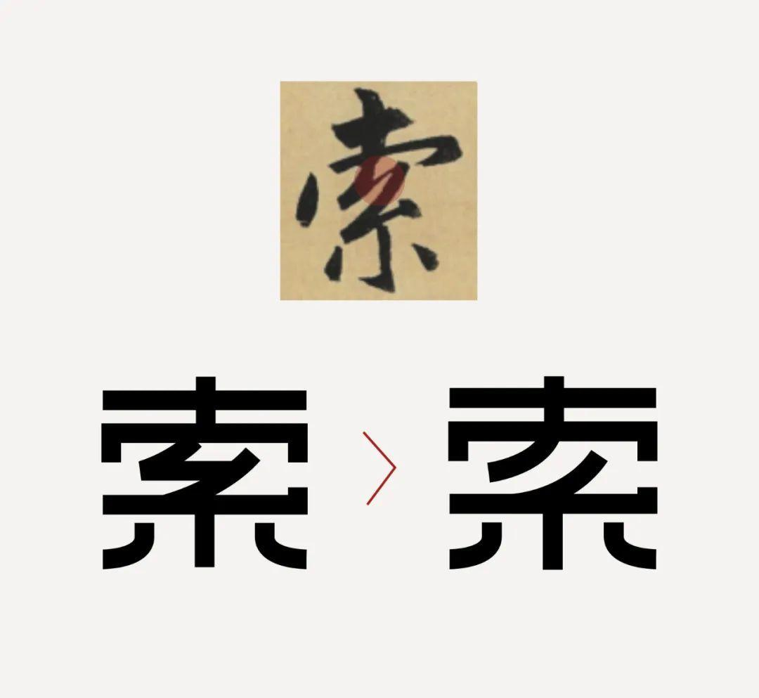 那么,怎么能保證識別度呢,刪減筆畫的選擇很重要,如上圖;上面的“索”,減的是橫筆,下面的“索”,減的是斜筆,很明顯,上面的更好識別。