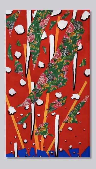 張紅梅曾提到,她一直試圖在繪畫(huà)作品中探索一條比較獨(dú)特的道路,這也與她的紡織品設(shè)計(jì)學(xué)習(xí)經(jīng)歷可以很好地結(jié)合起來(lái)。從繪畫(huà)和紡織品作為一個(gè)出發(fā)點(diǎn),使用五彩斑斕的面料來(lái)代替手中的顏料和畫(huà)筆,在畫(huà)面中呈現(xiàn)出一種抽離的感覺(jué),使觀者在遠(yuǎn)觀和近觀的過(guò)程當(dāng)中在視覺(jué)和觸覺(jué)上產(chǎn)生一種模糊的感受,而張紅梅對(duì)于探索這種模糊的感受非常感興趣。