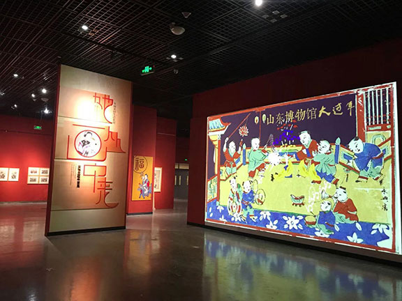 山東工藝美術學院以傳統年畫與數字媒體技術融合為方向,通過數字化手段進行傳統年畫主題動畫短片、年俗文創產品、年畫新樣設計創作,實現優秀傳統工藝的活化與傳承,是本次展覽的亮點。