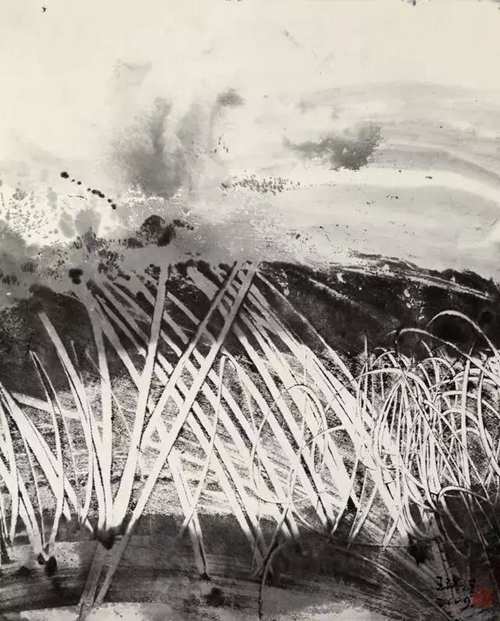他畫殘荷意象,闡釋“線”與“墨”所能傳達的心緒境界,充滿了對儒、道、釋傳統價值的重新發現和認知;他探索抽象的水墨語言,大膽嘗試對外來觀念、媒介、方法的選擇和改造,形成的是當代東方價值觀,表達的是中國藝術經驗。能在一點一線中見方圓,在一波三折中承接宇宙蒙養;酣暢的筆墨運動,蘊含著漢唐氣象;黑白灰關系的妙用,承載著心靈品質的烙印;枯濕濃淡的交錯,流溢著楚人的歌舞節奏;價值取向的人文哲思,是審美判斷的價值尺度。這樣的語境修煉如能彌久,必能使藝術語境爐火純青。