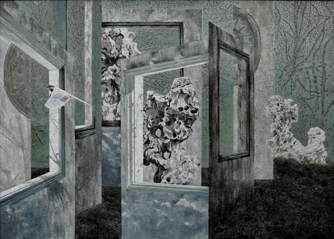 《園林·共時的窗》180×130cm,漆畫,周慶