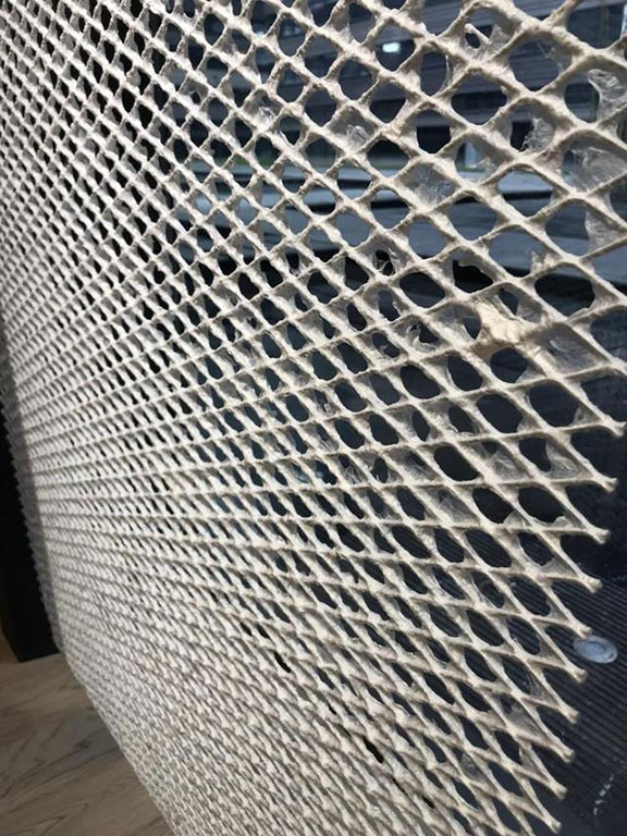 紙,,10種材料之一,其代表性建筑為法國巴黎的安東尼·克拉夫檔案館。紙的有趣之處在于,它可以以液態存在。和紙被稱為是“凍結的液體“,在全部由固體構成的建筑中,擁有這樣的液體屬性是非常珍貴的。所以,日本的建筑傳統非常重視紙的運用。采用了和紙涂裝的制作技術:在多空的鋁制面板上涂抹和紙紙漿,再用他們來包裹整個空間。