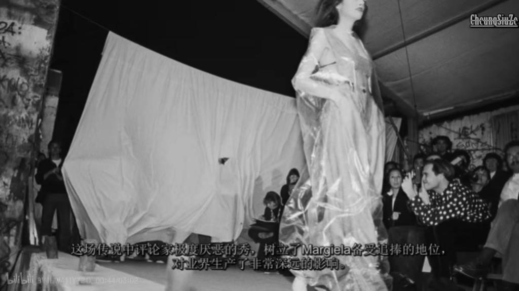 1988年,Margiela與他的搭檔Jenny Meirens聯(lián)手創(chuàng)辦了品牌Maison Martin Margiela,在1988年發(fā)布第一場秀1989SS,這場秀在巴黎的一個荒廢的操場舉辦,Margiela讓模特穿著鞋腳踩紅泥走過鋪滿白紙的秀場,秀臺上一個個紅色的腳印給觀眾留下了深刻的印象.(類似的可以讓人聯(lián)想到伊夫克萊因的行為藝術(shù)表演。)