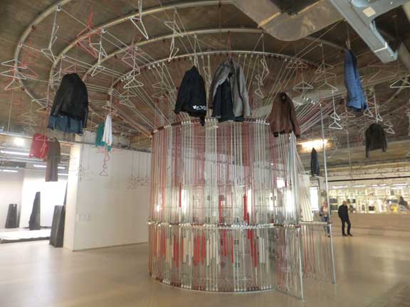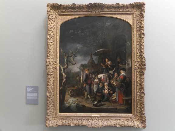 荷蘭的很多博物館有專門的寄存服務,并且分為專職工作人員和自助兩種類型。國立博物館的寄存服務工作人員最多,并且還有很多自助存包柜。但是,川流不息的游客還是讓工作人員忙的一塌糊涂。博寧恩博物館的寄存業務完全是自助的。寄存柜和懸掛衣服的設計非常棒(圖2.),還獲了荷蘭的一個什么獎。游客可以把行李箱和背包放到用繩子編織的寄存柜里。看完展覽之后來取行李的時候,一眼就能看到自己的東西。另外,把衣服放在衣撐上,拉到高處,讓人拿不到。然后把繩子鎖住,把鑰匙拔下來,就可以去看展覽了。博寧恩博物館展出的現當代藝術比較多(圖3.)。除了赫里特·道的《江湖騙子》之外,還有薩恩列達姆的《教堂內景》。另外還有《股票市場》、《醫生給婦女看病》等著名的作品。魯本斯、倫勃朗的作品在這里也有不少。另外,還有很多設計作品,就是日常生活器具、椅子什么的。還有現當代作品,如裝置藝術、行為藝術。所以,博寧恩博物館是傳統藝術與現當代藝術并存的博物館。
