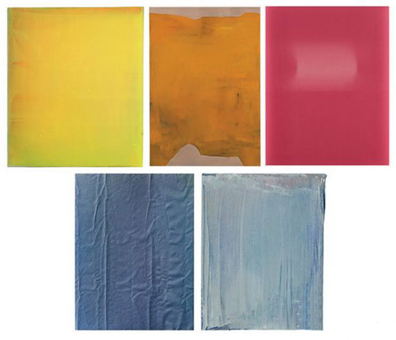 上排從左到右分別是:Untitled (2010), by Markus Amm;Untitled (2013), by Stef Driesen;Roll Fades (2012), by Sam Falls