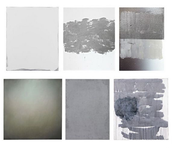上排從左到右分別是:Untitled (2010), by Ned Vena;Untitled (2011), by Hugh Scott-Douglas;Spine, Chapter 20 (Silberkuppe) (2010), by R.H. Quaytman