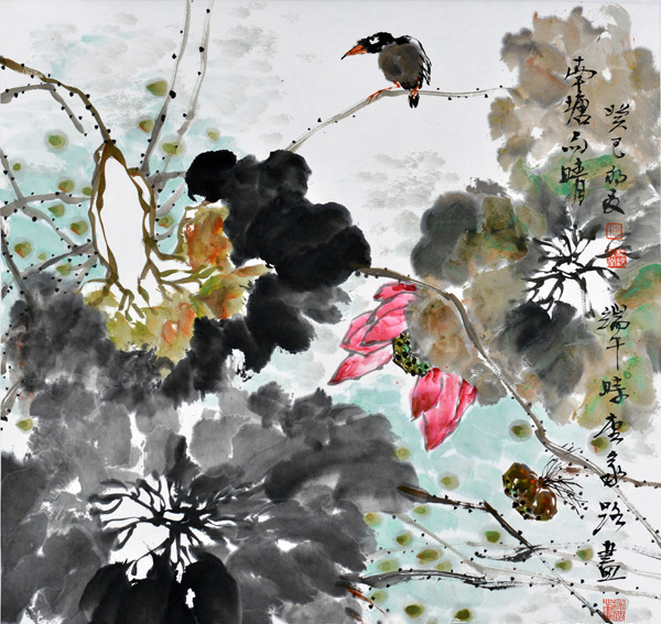 家路兄是一位游走于民藝學、設計藝術學領域的學者型藝術家。大學學的是裝潢設計專業,后又投入到民間藝術和藝術學研究,先后師從潘魯生、陳池瑜、張道一等著名學者研習藝理,并獲得碩士、博士學位,在民藝研究和設計藝術學研究領域著述頗豐,且視野開闊,文思縝密,多有鮮明獨到的見解。其花鳥畫師從于花鳥畫名家郭志光先生,因而,郭志光先生師承傳統又重創新,重格調,講氣韻的創作取向也影響著他。家路注重對老師和前輩大師的學習,以一種傳統文化的自覺,接續寫意花鳥的文脈,注重用筆的書寫性,追求韻致和境界。他的寫意花鳥畫筆法靈動,墨色自然,色彩明快,體現出勃勃生氣甚至野逸之氣,不同于無病呻吟的那些自詡的所謂文人畫,更加注重自身感受的表達,是一種真實情感的自然流露。